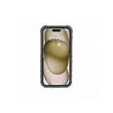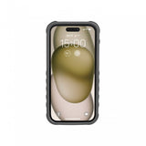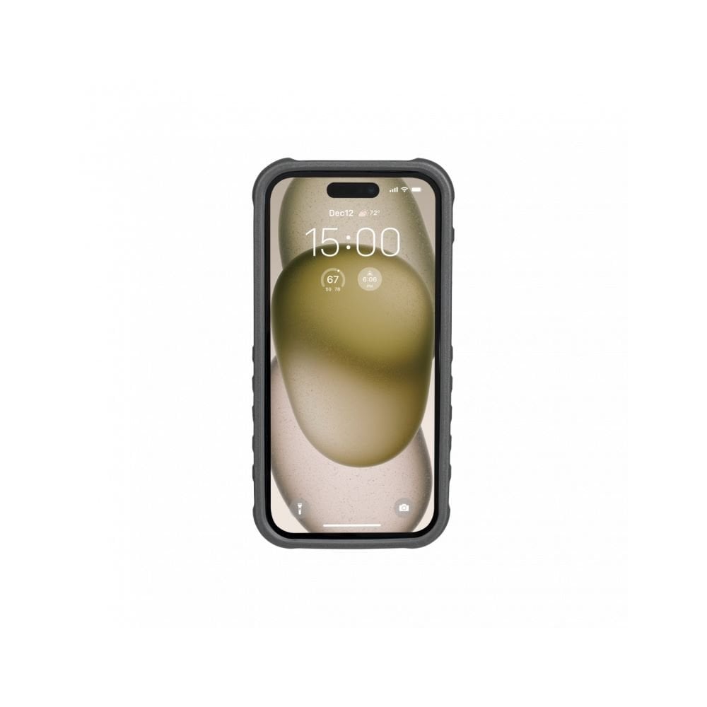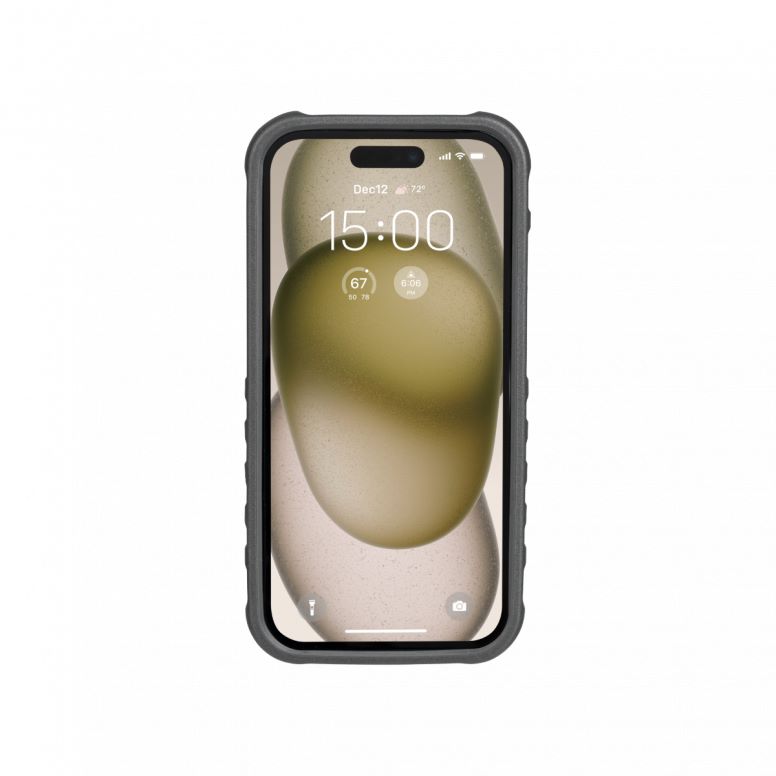 The RideCase for iPhone has a scratch-resistant, dual-density, non-slip, high-grade engineering polymer/rubber exoskeleton for shock and impact protection that holds your phone securely while on the go. Its full angle adjustment allows viewing in portrait or landscape modes and an Integrated flip stand for post-ride hands-free viewing. Compatible with Type-C charging.