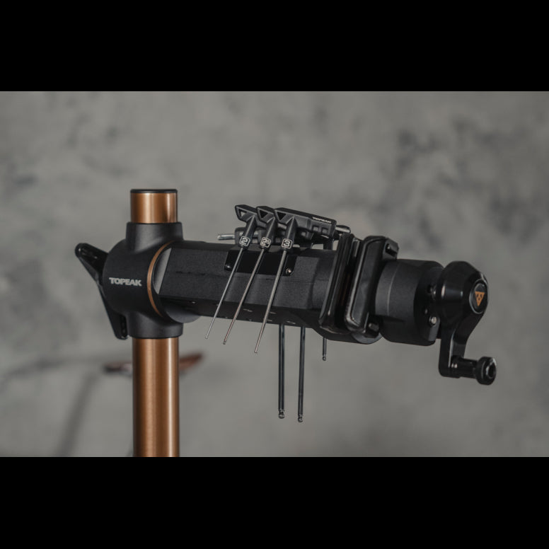 The ultimate mechanic's workstand specially designed for all bike types including E-Bikes. With a max load of 45kg the Prepstand Team Issue has the greatest stabillity for all bikes from high performance road to utility E-Bikes. Featuring a quick release jaw clamp and oversized tri adjuster for quick and easy bike mounting as well as a magnetic tool plate to keep tools and parts close to hand. Folds down to 1275mm length for easy portability and storage.