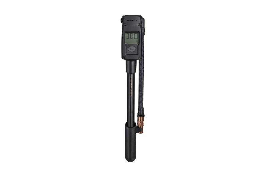 A compact shock pump with easy-toread digital gauge delivering accurate pressure readings up to 300psi. The Pressure-Rite connector and air release button make dialing in your pressure quick and easy, and there is no pressure loss when removing the connector while the rotating hose