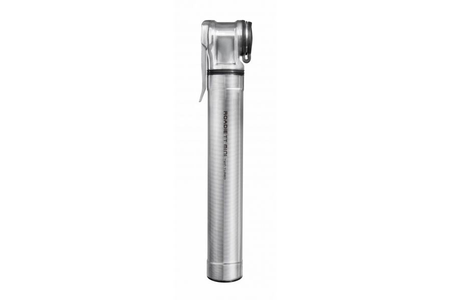 The Roadie TT Twin Turbo is a full metal, pocket sized mini pump that transfers larger air volume from a bigger diameter outer chamber into a smaller diameter inner chamber to deliver more air at higher pressures to fill tyres 50% faster and easier. Integrated dust cap keeps pump head clean and thumb lock lever ensures an air-tight seal.
