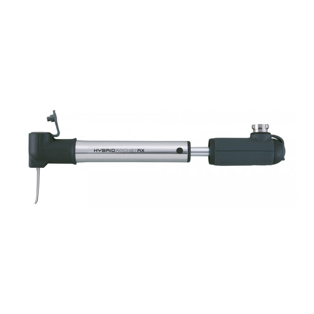 TOPEAK HYBRID ROCKET RX Micro-sized, pump/CO2 inflator specifically designed for high pressure road bike tyres. Innovative two-sided design features CO2 inflator on one side, mini pump on the other. Efficient and smooth pumping action inflates road tyres to 160psi / 11 bar. Smarthead Threadlock with integral dust cap CNC aluminium barrel and handle Side mount bracket (or optional centre mount bracket) CO2 cartridge included Works with Presta valves only 16.8x3.5x2.3cm 100g