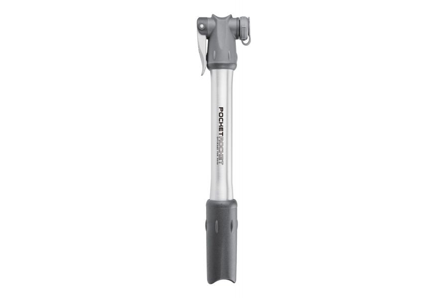 TOPEAK POCKET ROCKET Ultra light high pressure mini pump which easily pumps up to 160psi. Specially designed for road enthusiasts. Machine cut, sleek aluminium barrel; durable and lightweight Padded pump head with internal bayonet handle lock for easy gripping and handling Reversible Presta/Schrader connector Integrated seal and dust cap Durable aluminium thumb-lock 22.2x4.2x2.5cm • 115g