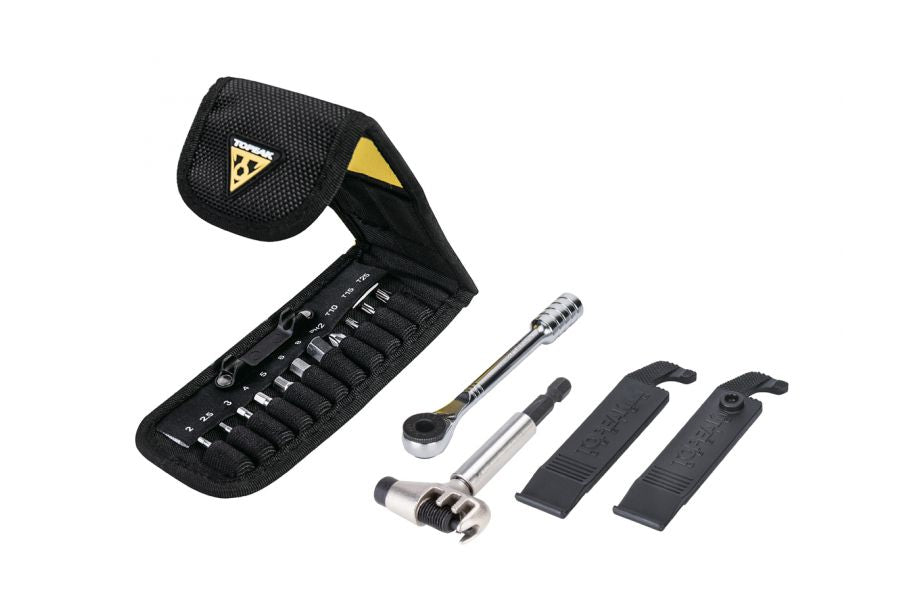 The latest addition to the Ratchet Rocket range. Includes a micro ratchet along with the most popular hardened steel tool bits and a compact chain tool allowing you to make adjustments or repair your bike while out cycling.
