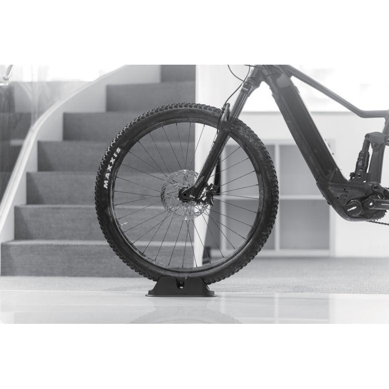 Front wheel fixed holder with two mounting directions supporting different tyre widths, capable of accommodating tyres up to 29" x 2.6", meeting the parking needs of road, gravel and MTBs.