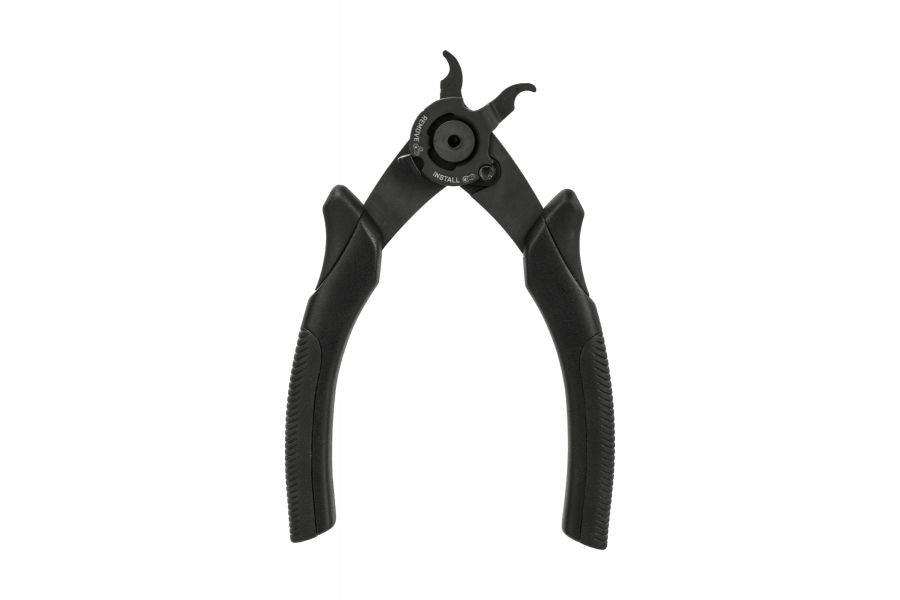Shop-grade, pro-quality master link pliers for removing or installing all types of chain master links. Includes: €¢ Hardened steel / engineering grade polymer construction €¢ Durable padded grip for secure handling and comfortable usage. €¢ 175g