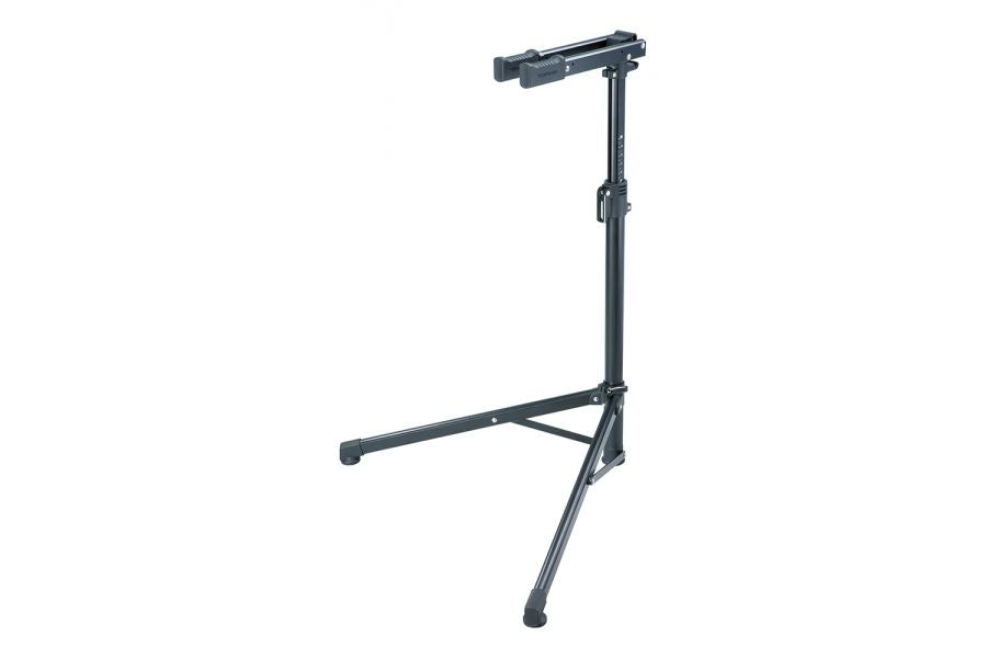 This simple and easy-to-use workstand does not clamp the frame, which may scratch or damage the finish. Simply hang the bike by the seat post or seat tube from the jaws.
