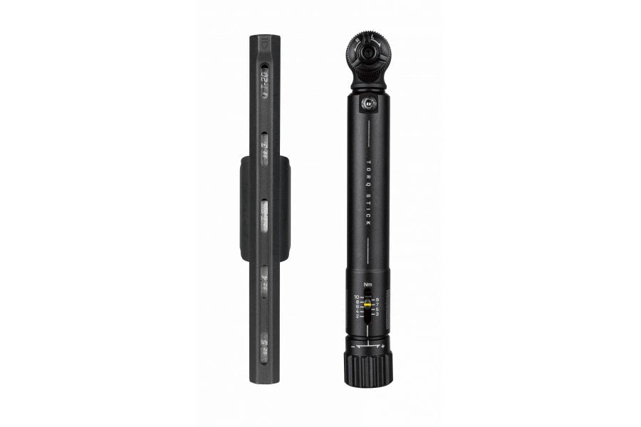 An incredibly compact torque wrench with adjustable torque value range of 2-10 Nm. A standard hex drive reversible ratcheting head with adjustable preset torque values allows you to tighten frame or component bolts safely and with confidence. Includes a five bit storage pen with visible window design letting you find the correct bit quickly and easily.