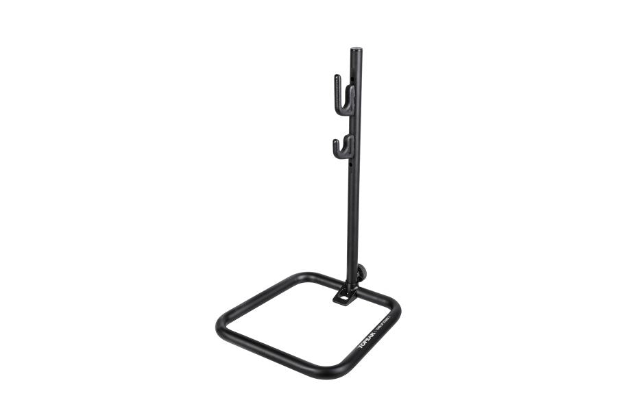The perfect solution to store your eBike or other heavy duty bike on a tune-up stand. The adjustable hooks allow positioning to fit chainstays and seatstays easily and provides rear wheel lift for maintenance, washing, storage and display.