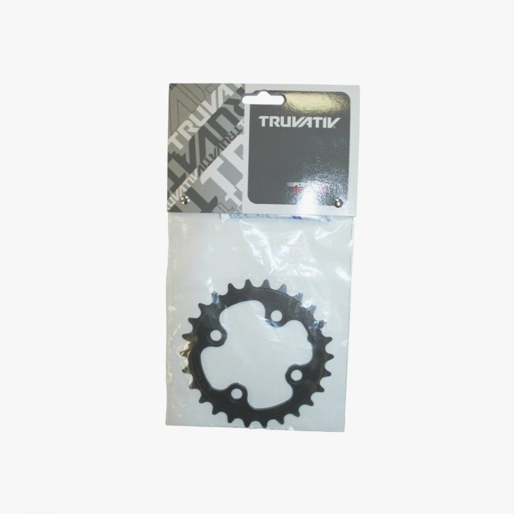 Truvativ 26-teeth Chainring made of aluminium. Ideal for mountain bike. 4 Bolt, 64 mm bolt centre diameter (BCD). Available in blast black colour. 3 mm Chainring thickness.