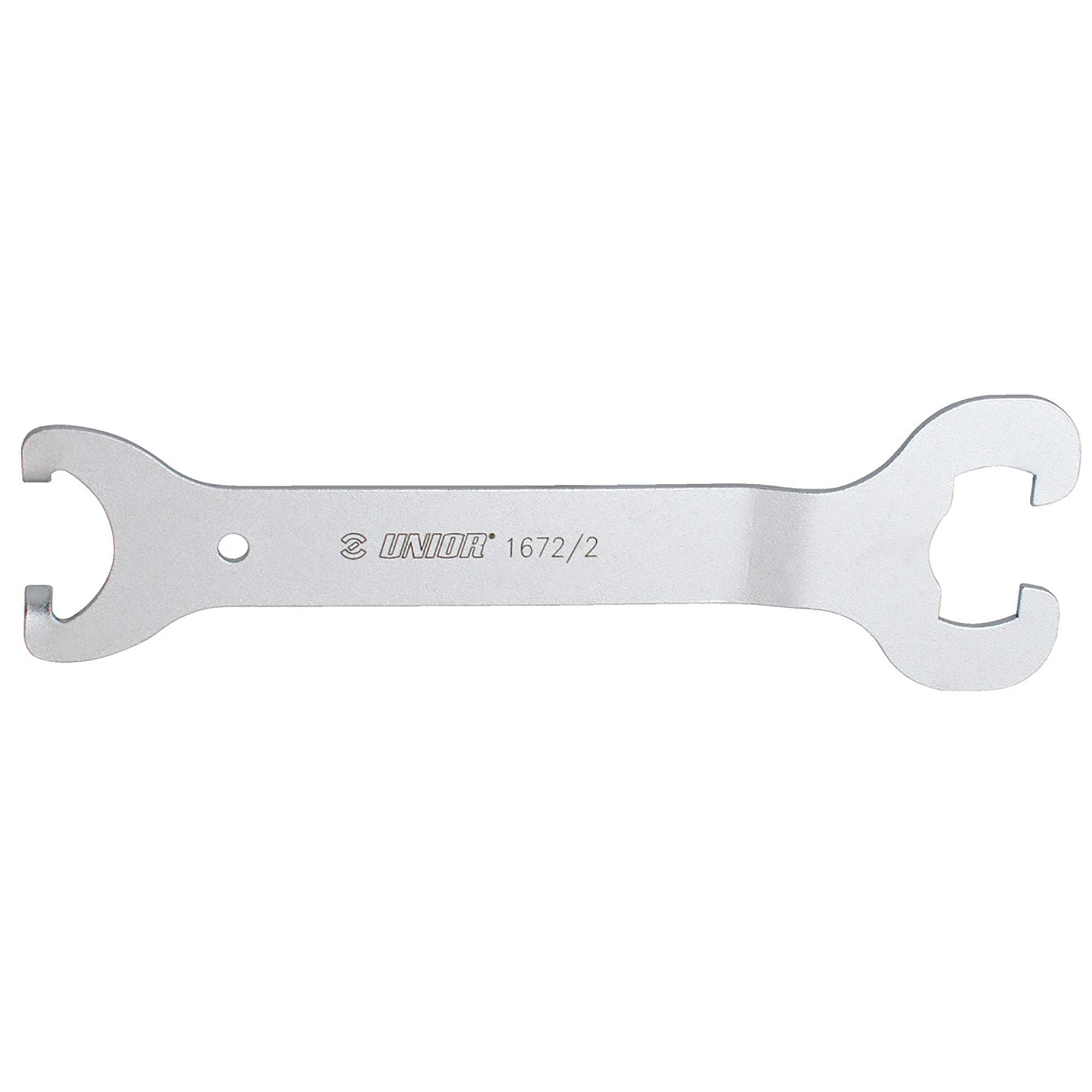 The wrench is used for installing and removing of older bottom brackets. The wrench fits perfectly in the hand while the slim body and gap form enable quick and efficient installation and removal of older types of bottom brackets. The length of the wrench is 204 mm.