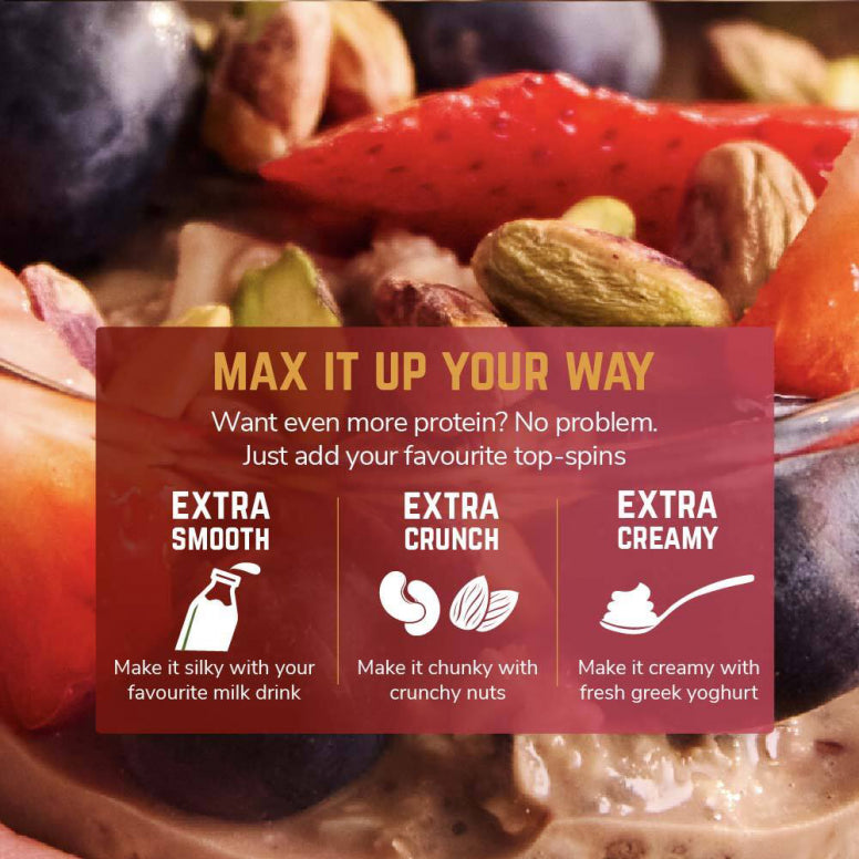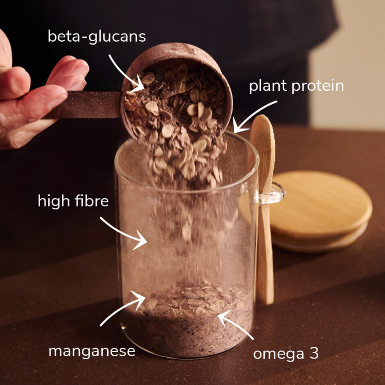 Optimally balanced with up to 16g plant protein per serve, chia, pumpkin and flax seeds plus wholegrain jumbo oats and real fruit. Each serve is rich in heart-healthy omega 3, slow-release carbohydrates and 25% of your daily fibre fix - helping you stay fuller for longer and actively lower your cholesterol too.