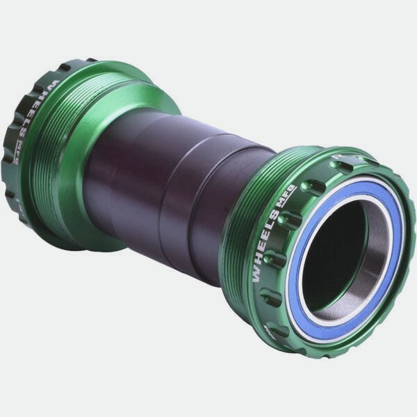 T47 threaded BB cups for T47 frames and 30mm spindle diameter cranks. Cups have outboard bearings, and can be used in BB shells with widths from 68mm to 100mm. Machined aluminum cups thread together directly into a T47 BB shell. Bearings are easily serviced or replaced. Includes sleeve to fit between cups for added protection from dirt and grime, and also keeps your internal wires and hoses from rubbing on the crank spindle.