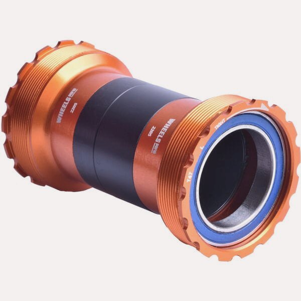 T47 threaded BB cups for T47 frames and 30mm diameter spindle compatible cranks. Cups have internal bearings, and can be used in BB shells with widths from 86mm to 121mm. Machined aluminum cups thread together directly into a T47 BB shell. Bearings are easily serviced or replaced. Includes sleeve to fit between cups for added protection from dirt and grime, and also keeps your internal wires and hoses from rubbing on the crank spindle.