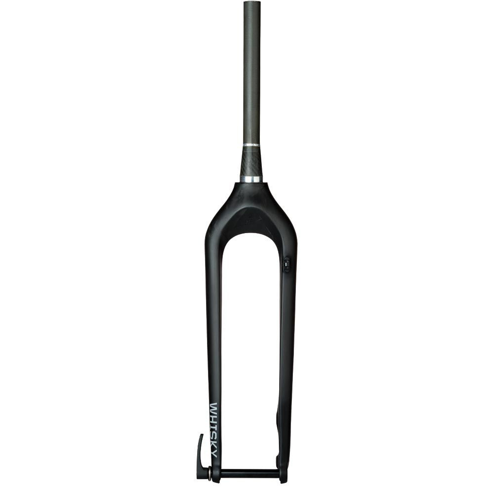 1.125" - 1.5" Tapered carbon steerer S.H.I.S. - Clamp 28.6 - Race 40 15mm ThruAxle Dropouts - 100mm spacing Post mount disc (160mm-185mm) 95mm width between fork legs 3.0" max recommended tire size Custom DT RWS Skewer UD full carbon construction No rider weight limit 5 year Whisky warranty ASTM Condition 3 - For off-road riding and jumps less than 24"
