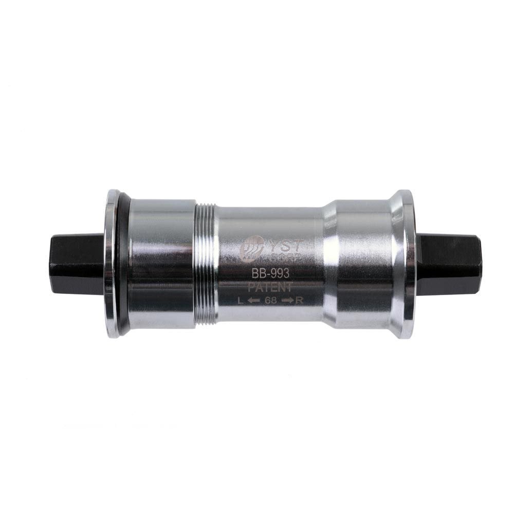 The patented design YST BB-993 threadless cartridge unit threads to itself and has bevelled cups for snug fit.