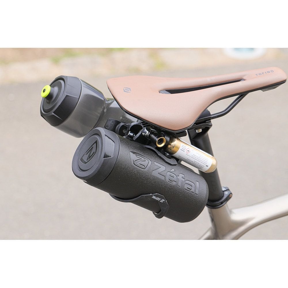 It contains a universal rail mount bracket and 2 bottle cages, the Z2 and Z2i, as well as the screws supplied for installation. The side-opening bottle cages allow easy and quick access to the bottles. Made in France with a reinforced fibre-glass material, the cages grip the bottles very well. 2 CO2 holders are included on the Z2i.