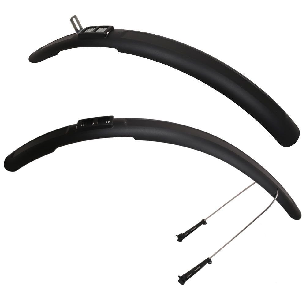 The Trail 65 is a set of mudguards for front and rear wheels. The mudguards fit all diameters of adult bike wheels and to tyres with a width of up to 2.4". The Trail 65 is the widest mudguard in the Trail range. The rear blade has an adjustable double stay which guarantees reinforced vibration-free fixture.